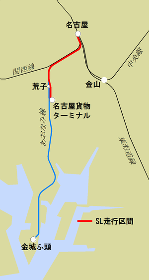 さて、あおなみ線の旅客輸送は需要予測を大きく下回り、苦しい経営が続いています。需要予測が甘かったことに加え、名古屋駅の立地が悪く利用しづらいのも影響しているのでしょう。そこで、出資者である名古屋市は需要増を狙って、SL列車を走らせる構想を立ち上げました。