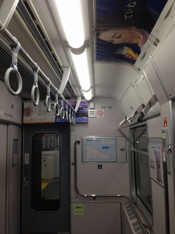 今日(9月4日)の夕方、中津川発名古屋行きの快速(2752M)の先頭にB519編成が充当されていたので、5次車で唯一変わったLED照明を撮ってきました。スマホなので画質はご勘弁。半円形のカバーがかかっており、LED照明らしい「つぶつぶ感」もなく、車内はとても明るい印象を受けました。整理券発行機は従来と変わらないですね。