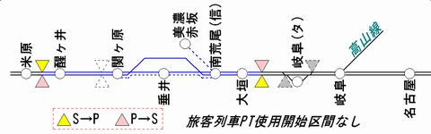 私の知る限り、この区間でPTの使用を開始している旅客列車はまだありません。ただし、383系の一部編成がATS-PT使用を開始していることから、大阪発着の「しなの」が醒ヶ井~大垣間でPTの使用を開始している可能性があります。