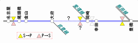 今回、旅客列車の使用開始とともに、尾頭橋付近にまで使用区間が延伸されたわけですが、大府~岡崎間の状況はまだ未確認です。岡崎と西岡崎の間にあるATS切り替え標識がなくなっていれば、尾頭橋~豊橋間のATS-PT整備が完了したことになります。情報をお持ちの方があれば、お寄せくださいませ。